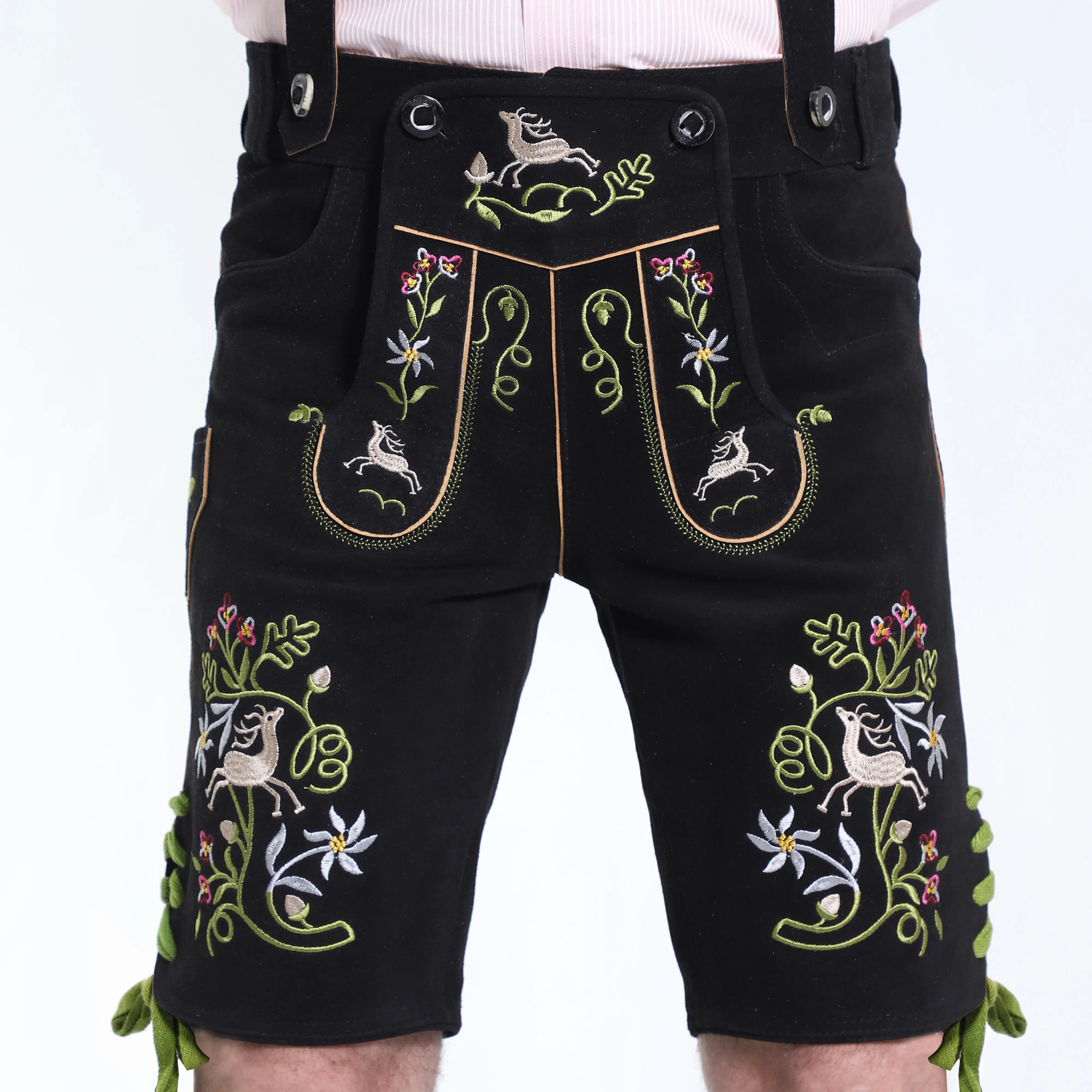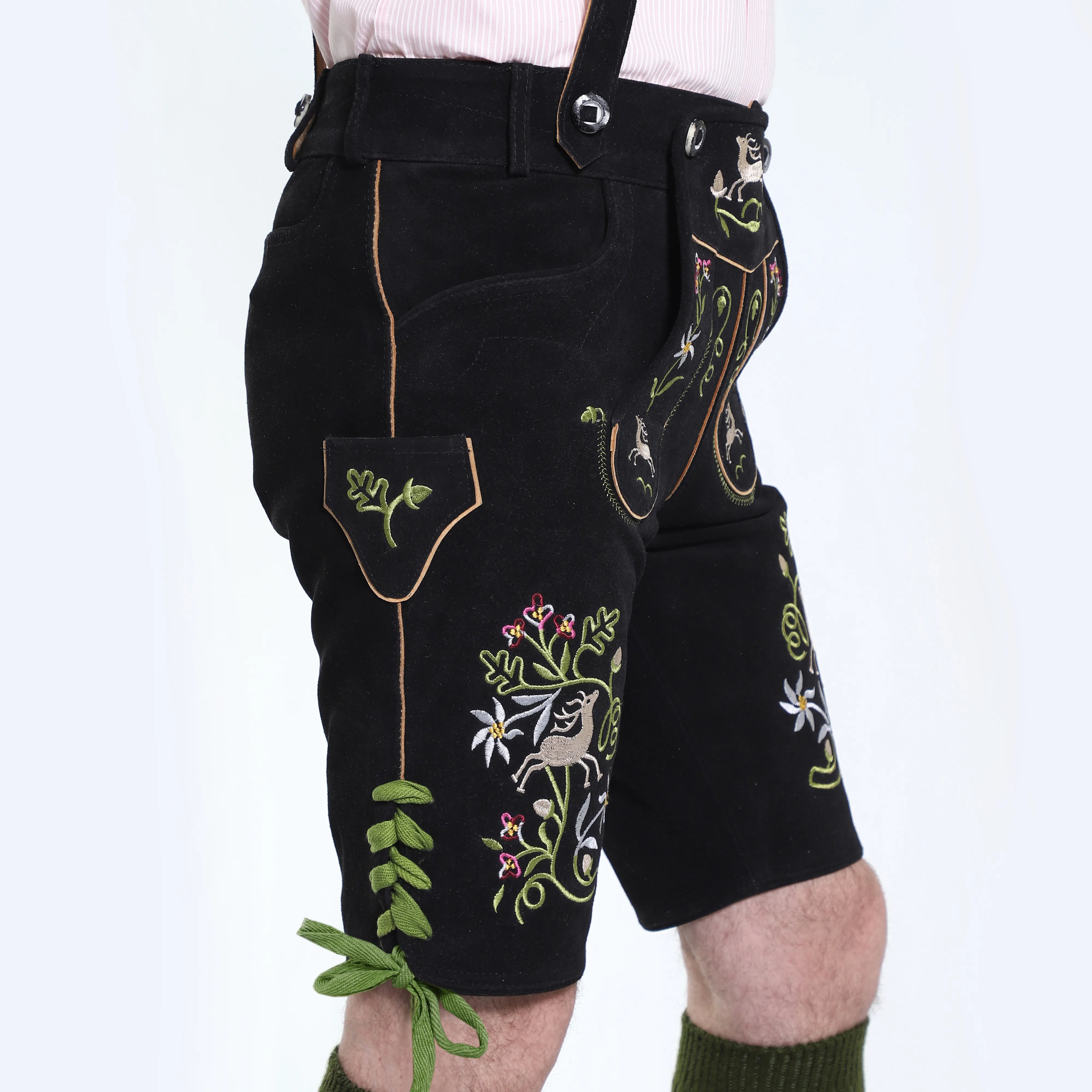 Transform any occasion with this black lederhosen outfit designed for authentic cultural expression. These traditional German shorts feature the authentic German styling that impresses at every gathering. Complete your Lederhosen look with a Trachten shirt and traditional Alpine footwear.